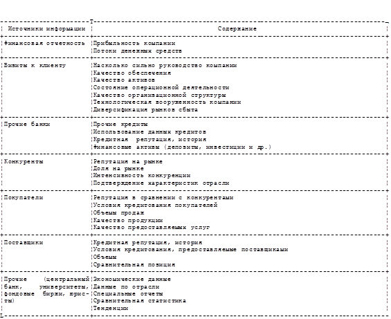 - с компетентными источниками вне фирмы (поставщики, прочие банки, клиенты заемщика и др.).