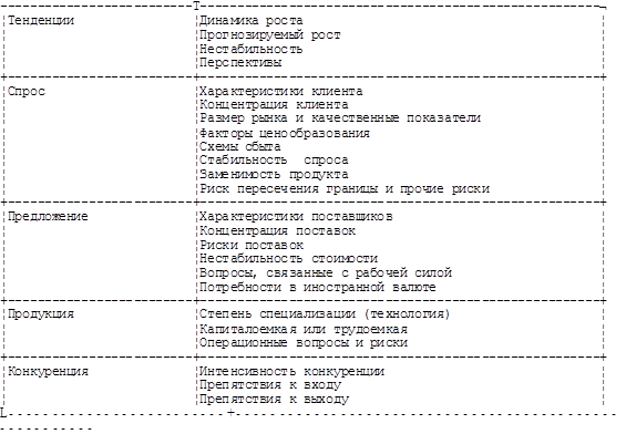 Состояние отрасли. Для правильной оценки рисков, с которыми сталкивается клиент, кредитный инспектор должен хорошо представлять себе условия, в которых работает заемщик. Даже сильная компания может испытывать значительные спады в проблемной отрасли. Для того чтобы интерпретировать данные по отрасли, кредитному инспектору следует изучить: