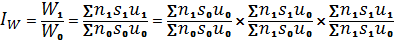∆W = W1 – W0 = (∑n1 s0 u0 – ∑n0 s0 u0 ) + (∑n1 s1 u0 – ∑n1 s0 u0 ) + (∑n1 s1 u1 – ∑n1 s1 u0 ).