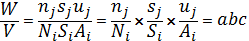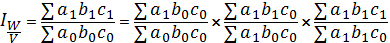 ∆W/V = (∑a1 b0 c0 – ∑a0 b0 c0 ) + (∑a1 b1 c0 – ∑a1 b0 c0 ) + (∑a1 b1 c1 – ∑a1 b1 c0 ).