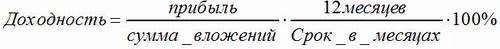 Также доходность можно посчитать, если известна начальная и конечная сумма вложений: