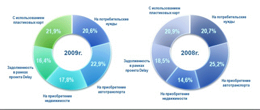 Несмотря на некоторые ограничения, нормативно-правовая база, касающаяся факторинга в Республике Беларусь, в целом урегулирована и позволяет банкам развивать факторинговый бизнес. Например, ОАО “Белгазпромбанк” совместно с партнерами с 2005 г. успешно реализует проект “Рассрочка DELAY”. В рамках данного проекта торговое предприятие продает товары физическим лицам в рассрочку и в течение нескольких дней по договору факторинга уступает денежные требования ОАО “Белгазпромбанк”. В основе проекта “Рассрочка DELAY” лежит технология открытого факторинга без права регресса. Отсрочка платежа составляет 6, 12 и 18 месяцев, основными клиентами являются торговые предприятия, реализующие компьютерную и бытовую технику, а также мебель [7]. В 2009 г. в структуре розничного кредитного портфеля на его долю приходилось 16,4% [8].(см.рис.2.3.3)