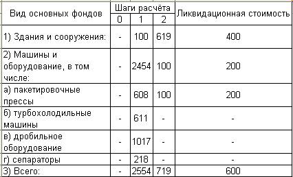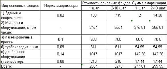 В соответствии с данными Таблицы 1 и нормами отчислений по видам основных фондов сумма амортизационных отчислений по шагам реализации представлена в Таблице 4.