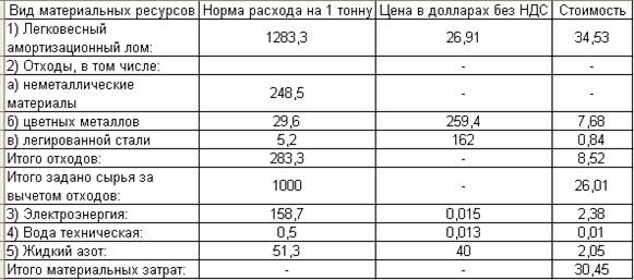Стоимость материальных ресурсов на одну тонну металлопроката определяется как норма расхода, умноженная на цену без НДС.