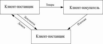 · предприятие (заемщик) – фирма – покупатель товара.