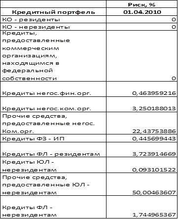 На 01.04.2010 удельный вес прочих активов составил 3,3% в балансе-нетто.