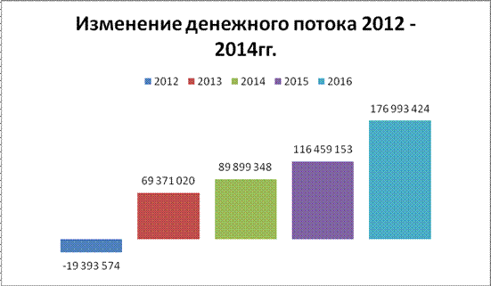 Чистая текущая стоимость по проекту на конец 2016 года составляет 107 754 516 рублей, внутренняя норма прибыли 43.5%, период окупаемости – 3,38 года, рентабельность инвестиций – 2,01.