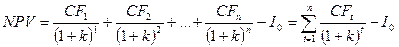 Чистая текущая стоимость рассчитывается по следующей формуле: