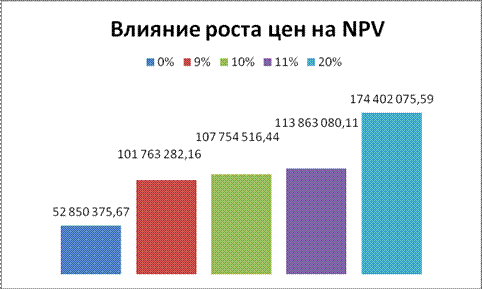 Влияние изменения цен на значение NPVпредставлено на следующей диаграмме №6.