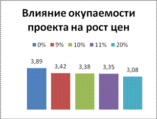 Темп изменения цен ресторана отражается и на окупаемости проекта. На графике №4 представлено влияние изменения цен на услуги комплекса на период окупаемости проекта.