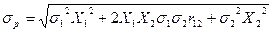 Откуда σp = ((0.5)2 *((0.3)2 + 2*0.25*0.3*0.6 + (0.6)2 ))1/2 =