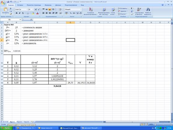 Ответ: а) стоимость акции 36,1513; б) стоимость акции при продаже к концу 5-го года составит 34,84.