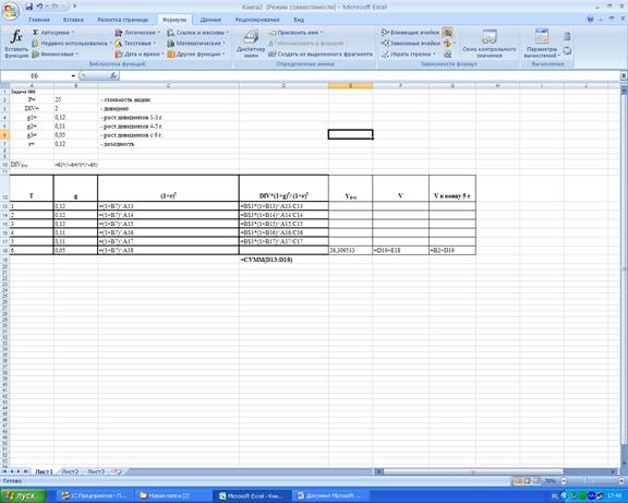 V = 9,8418 + 26,3095 = 36,1513 – стоимость акции