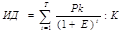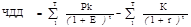 Допустим, делается прогноз, что инвестиция (К) будет генерировать в течение t лет, годовые доходы в размере Р1 Р2 , …Pк . Общая накопленная величина дисконтированных доходов (ДД) и чистый приведенный эффект (ЧДД) соответственно рассчитываются по формулам:
