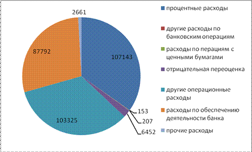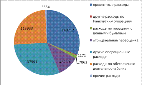 Из таблиц видно, что наибольший удельный вес занимают процентные расходы, а также другие операционные расходы.При этом произошло снижение удельного веса операционных расходов,если в 2007 году они составляли 33,6 % от общих расходов,в 2008 -30,4 %,а в 2009 –26,4