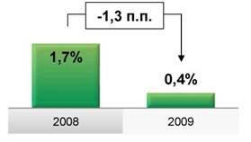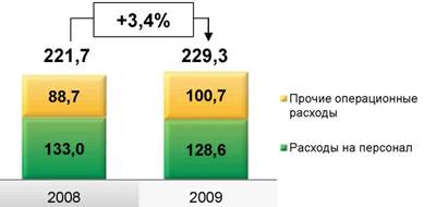 Операционные расходы выросли за 2009 год на 3,4% по сравнению с 2008 годом, при этом расходы на персонал снизились на 3,3%, рост прочих операционных расходов составил 13,5%.