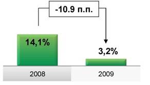 Рост чистого процентного дохода за 2009 год на 32,9% по сравнению с 2008 годом;