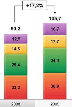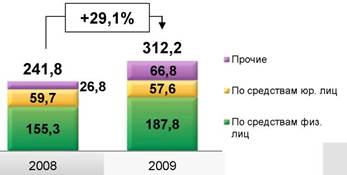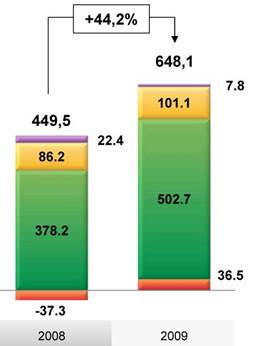 Чистая прибыль Группы за 2009 год составила 24,4 млрд. руб. (за 2008 год: 97,7 млрд. руб.) Стабильный рост доходов по основным направлениям операционной деятельности: