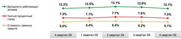 Сокращение чистого процентного спрэда вызвано уменьшением доходности работающих активов, что отражает рыночные тенденции второй половины 2009 года.