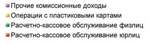 Основной источник комиссионных доходов: расчетно-кассовые операции с клиентами. Прочие комиссионные доходы включают доходы от агентских операций с ценными бумагами и иностранной валютой, комиссии по выданным банковским гарантиям, комиссии по инкассации и другие.