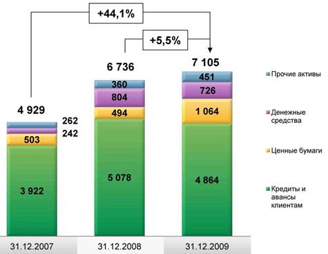 Операционные доходы до создания резервов под обесценение кредитного портфеля выросли за 2009 год на 44,2% в сравнении с предыдущим годом. Основным источником роста являются процентные доходы от кредитования клиентов, а также доходы о т торговых операций и переоценки ценных бумаг.