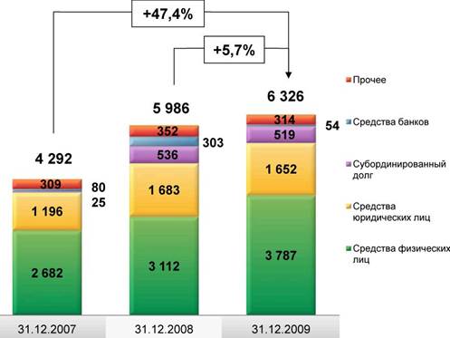Консервативный подход Группы к формированию резервов под обесценение кредитного портфеля: расходы на создание резервов под обесценение кредитного портфеля за 2009 год составили 388,9 млрд. рублей, что в 4 раза больше, чем за 2008 год.