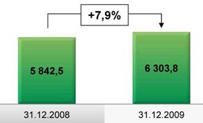 Процентные доходы Группы за 2009 год выросли на 31,5% в сравнении с 2008 годом.