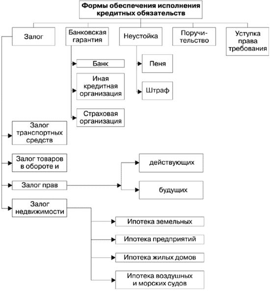 Обеспеченность кредита закрывает один из основных кредитных рисков - риск непогашения ссуды. Данный принцип подразумевает реальное обеспечение предоставленных заемщику ссуд различными видами имущества или обязательствами сторон. В качестве обеспечения своевременного возврата ссуды кредиторы по договору принимают залог, поручительство (гарантию) и обязательства в других формах, принятых практикой (см. приложение №1). В обеспечение ссуды банки могут принимать от заемщиков в залог любое его имущество, в том числе здания, сооружения, товарно-материальные ценности, товарораспорядительные документы, векселя и другие долговые обязательства, ценные бумаги (акции, облигации, казначейские обязательства и др.), иностранную валюту.