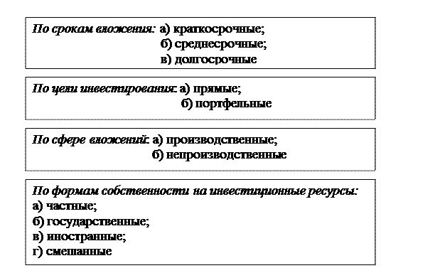 4) портфельные – не дающие право вкладчикам влиять на работу фирм и компаний, вкладываемые в долгосрочные ценные бумаги, покупку акций;