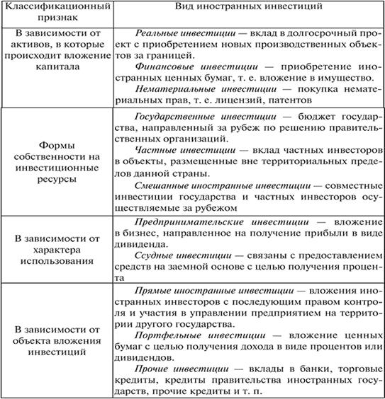 Иностранные инвестиции подразделяются на: прямые, портфельные и пр.