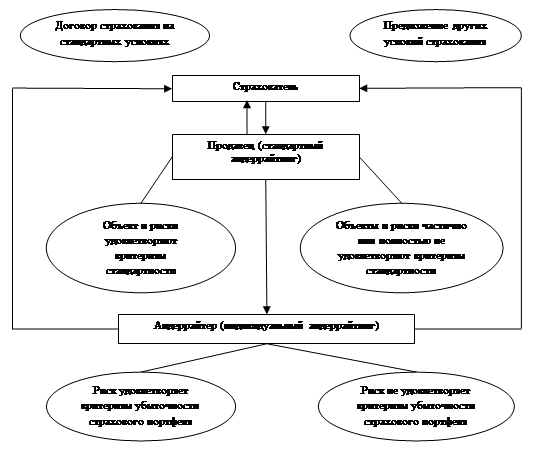 Процесс стандартного (первичного) и индивидуального (специализированного) андеррайтинга условно показан на рис. 1.