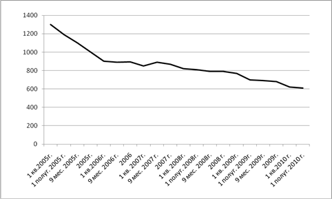 Рис. 3. Динамика количества страховых компаний на рынке в 2005-2010 гг.
