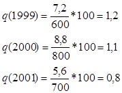 Где q – убыточность страховой суммы, Кв – количество произведенных выплат, Св – средняя выплата по одному договору, Кс – количество действующих договоров, Сс – средняя страховая сумма на один договор.