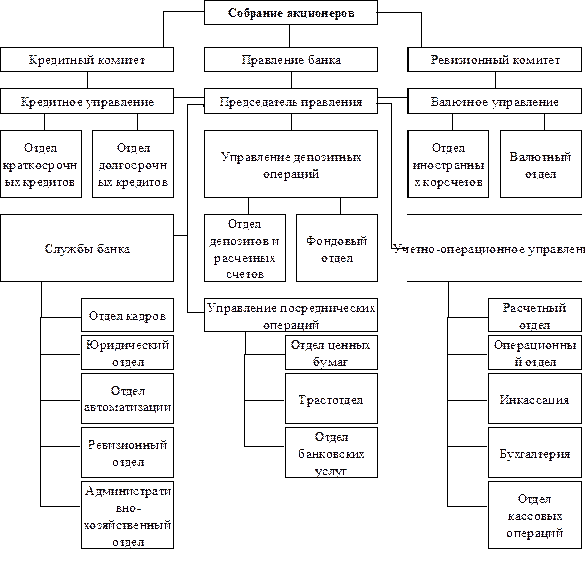 Деятельность коммерческих банков в России расширяется, возникает ряд новых для них операций, что отражается на организационной структуре банков, способствует ее совершенствованию, с тем, чтобы банки могли выполнять возложенные на них функции[3] .