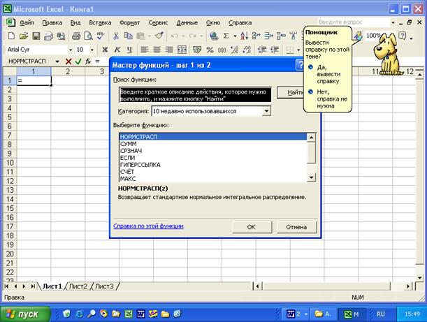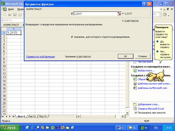 Чтобы посчитать нормальное распределение N(d2 ) воспользуемся Excel.