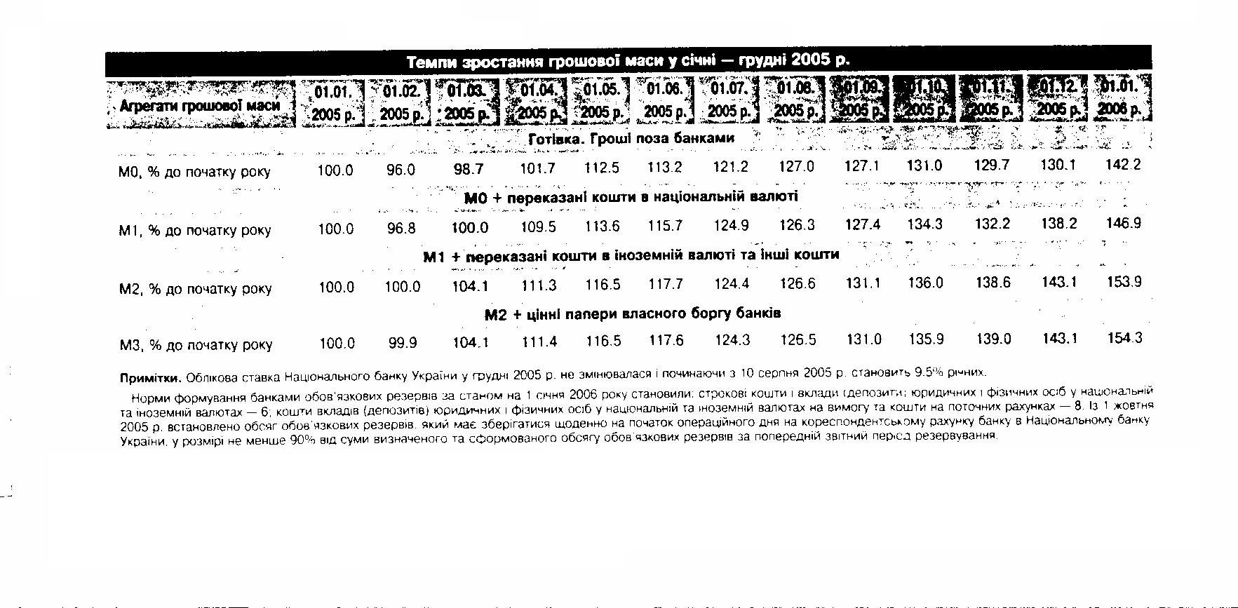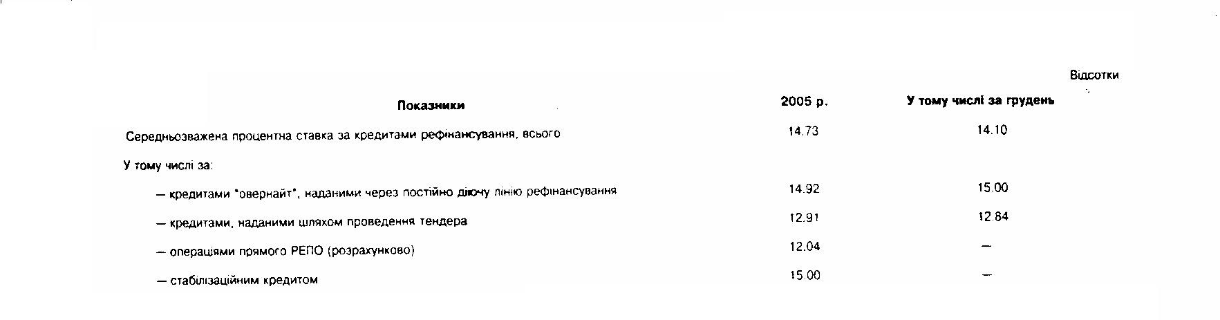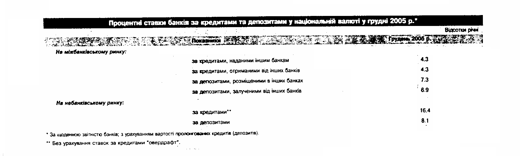 • Источник: "Бюлетень НБУ" № 2,2005, с. 32, 53,57 (процентные ставки по депозитам средневзвешены в годовом исчислении).