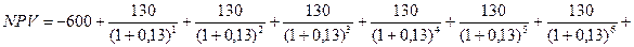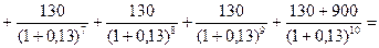 Т.к. всего поступлений за 10 лет планируется 1300 млн. руб., то примем ежегодные платежи (CF) равными за каждый год и, следовательно, ежегодный платеж составит: