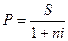 На практике часто возникает обратная задача: узнать величину суммы Р, которая в будущем должна составить заданную величину S. В этом случае Р называется современной (текущей, настоящей, приведенной) величиной суммы S.