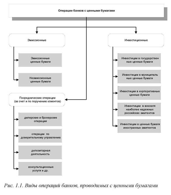 Операции банков с ценными бумагами можно разделить на три основные группы (см. рис. 1.1).