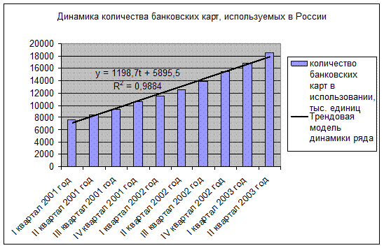 Вторая часть работы посвящена анализу динамики и построению прогноза выделенных типов банковских инноваций (на примере конкретных видов банковских продуктов и услуг).