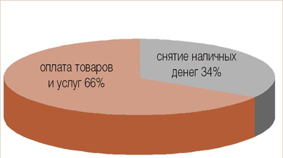 Держатели карт, эмитированных банками-резидентами, по—прежнему предпочитают в России использовать карты для снятия наличных денежных средств, а не для оплаты товаров и услуг. Это обусловлено прежде всего тем, что большинство эмитированных ими карт является «зарплатными», а также недостаточно развитой инфраструктурой их обслуживания. Хотя в последнее время, как уже отмечалось, она динамично развивается [4, с.270-271].