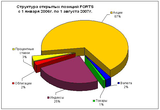 К фьючерсам на акции в FORTS в последнее время добавились контракты на обыкновенные акции Роснефти, МТС, Новатэк, ОГК-3, ОГК-4, Полюс Золото. Таким образом, видна тенденция расширения производных инструментов не только в «голубых фишках», но и во втором эшелоне.