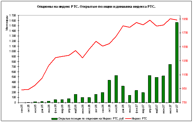 В целом срочный рынок в России поступательно приближается к развитым срочным рынкам Запада. Растут объемы торгов, интерес к рынку начинают проявлять и инвесторы-нерезиденты. Особо следует отметить высокие темпы роста ликвидности опционного рынка. Шаги, предпринимаемые ведущими биржами — РТС и ММВБ — в направлении совершенствования, оптимизации и удобства работы, позволяют предсказывать срочному рынку в России достаточно благополучное будущее. А если будут приняты законодательные акты, позволяющие ПИФам использовать опционы без боязни нарваться на штрафные санкции (сейчас механизм использования паевыми фондами опционов прописан недостаточно четко), то это позволит срочному рынку набрать еще большую ликвидность.[14]