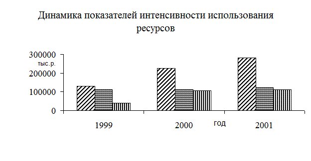На протяжении всего рассматриваемого периода наблюдалось увеличение стоимости активной части основных фондов предприятия (с 1999-2001 г.г. темп прироста составил в среднем 34% в год – машин и оборудования; 32% - транспортных средств). Наиболее интенсивный рост наблюдался в 2001 г., когда увеличение чистой прибыли позволило закупить новые виды оборудования, для осуществления работ по поступившим заказам, оплачиваемым в денежной форме. Вполне естественным является и то, что основную долю в структуре основных средств занимают производственные основные фонды, стоимость которых постоянно возрастала на протяжении периода (с 154831 тыс. р. в 1999 г. до 245641 тыс. р. в 2001г.). Также возрастает величина износа, за три года ее прирост составил 6,81%.