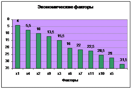Фактор с наименьшей суммой рангов (исходя из условия ранжирования) имеет наибольшее значение и, наоборот, фактор с наибольшей суммой рангов оценивается экспертами как наименее важный.