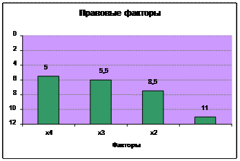 для соответствующего числа степеней свободы К = n – 1 и при заданном уровне значимости ά.Вычисленные значения критерия Пирсона практически по всем группам факторов больше чем табличные, значит полученный коэффициент конкордации – величина неслучайная, она действительно характеризует наличие определенной степени согласованности мнений экспертов, кроме экологических и правовых