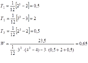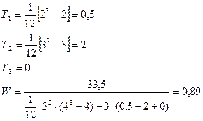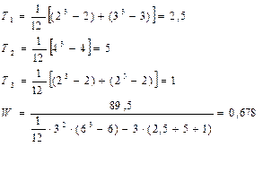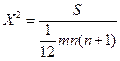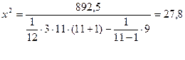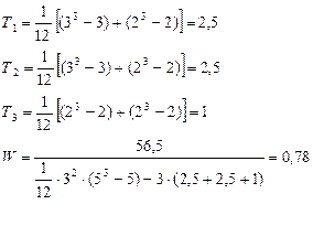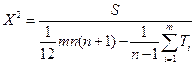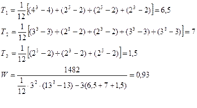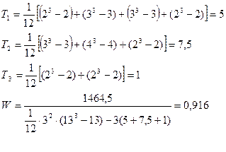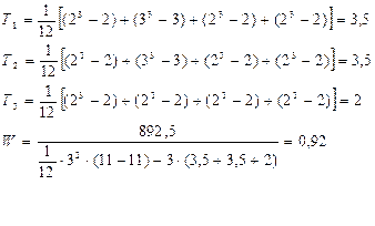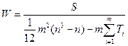 В тех случаях, когда в матрице имеются связанные ранги, W исчисляется по формуле: