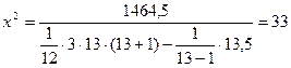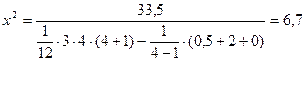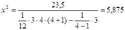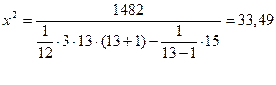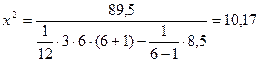 Чтобы убедиться, что полученный коэффициент конкордации, характеризующий среднюю степень согласованности мнений экспертов, является величиной неслучайной, проверим его значимость. Необходимость такой оценки вытекает из того, что мы пользуемся выборочными данными. Для оценки значимости коэффициента конкордации воспользуемся критерием согласия х2 – критерий Пирсона. х2 вычисляется по формуле (при отсутствии связанных рангов):