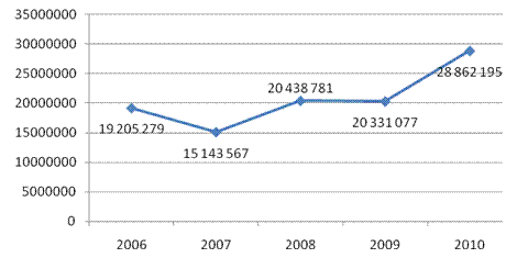 Таблица 1 – Анализ рынка страхования спортсменов в РФ за период с 2006 по 2010 годы