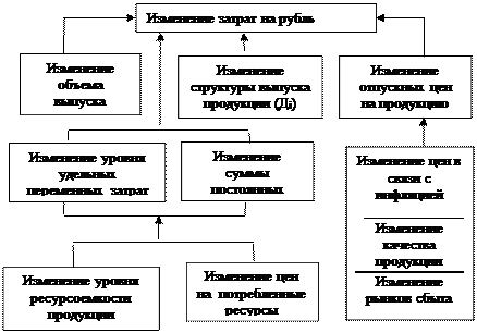 Рисунок 1.1 Взаимосвязь факторов, определяющих уровень затрат товарной продукции.